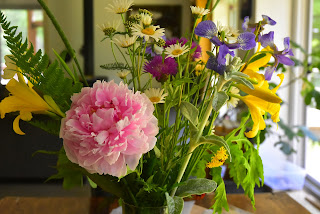 Of course a table isn't properly set unless you have a bouquet of flowers. These came from Mary's garden and added a rainbow of colour to our breakfast meal.